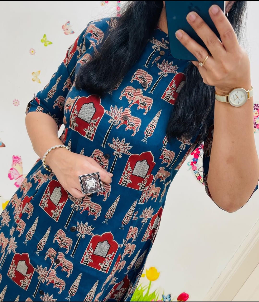 Make a bold style statement with this designer co-ord set crafted from fine quality cotton. This modern yet ethnic ensemble features an A-line kurti paired with smart ankle-length pants — the perfect blend of comfort and trend.