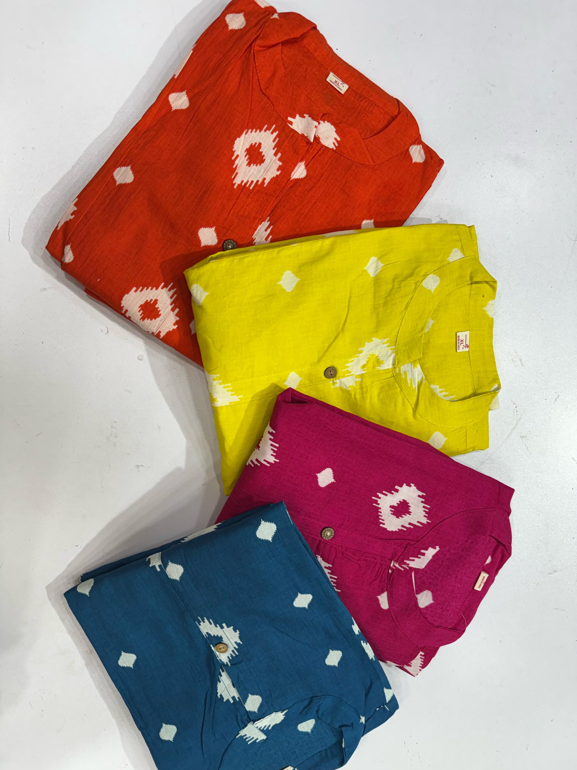 Step into vibrant ethnic elegance with our newest Jaipur print A-line co-ord set. Crafted from pure Mal cotton (60.60), this breathable and lightweight fabric offers all-day comfort. The kurti features subtle border design work and a convenient side pocket, combining style with functionality.